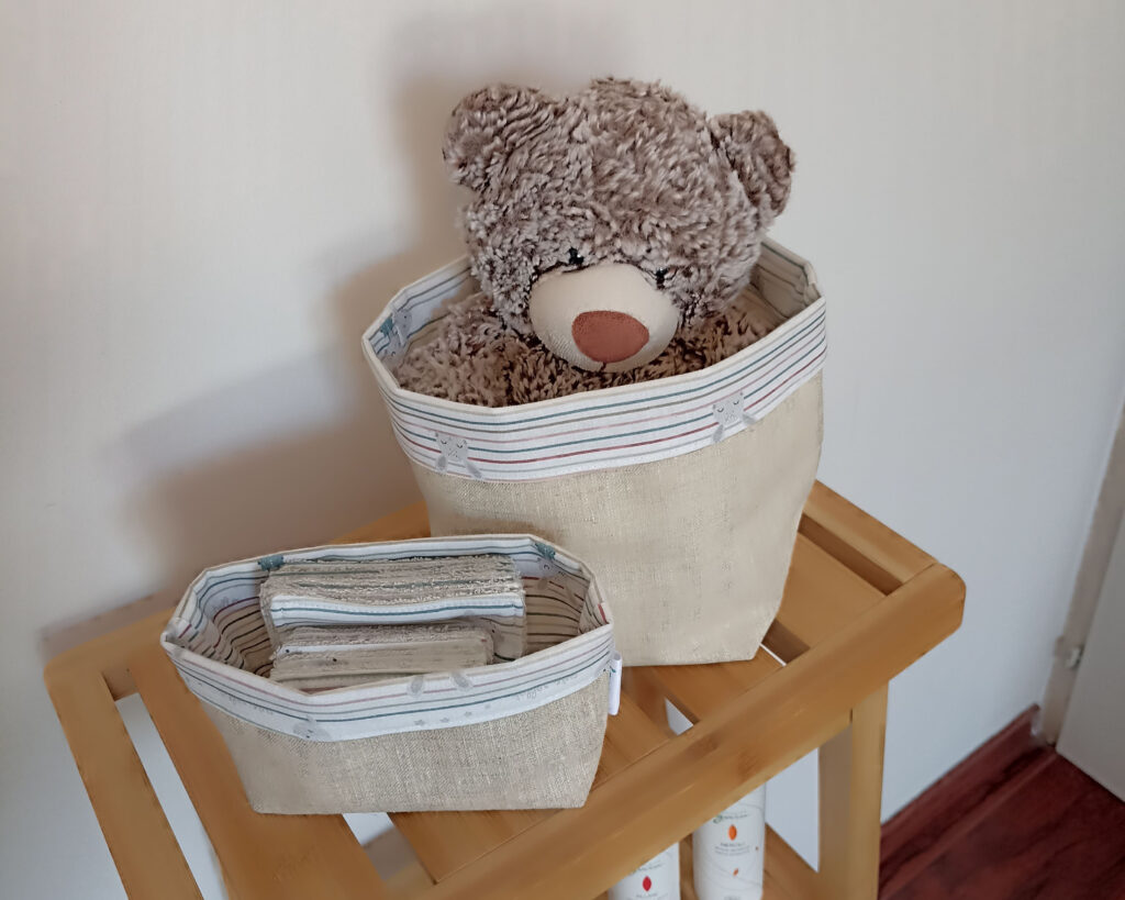 Un ensemble de 2 paniers, 8 lingettes et 8 carrés visage.