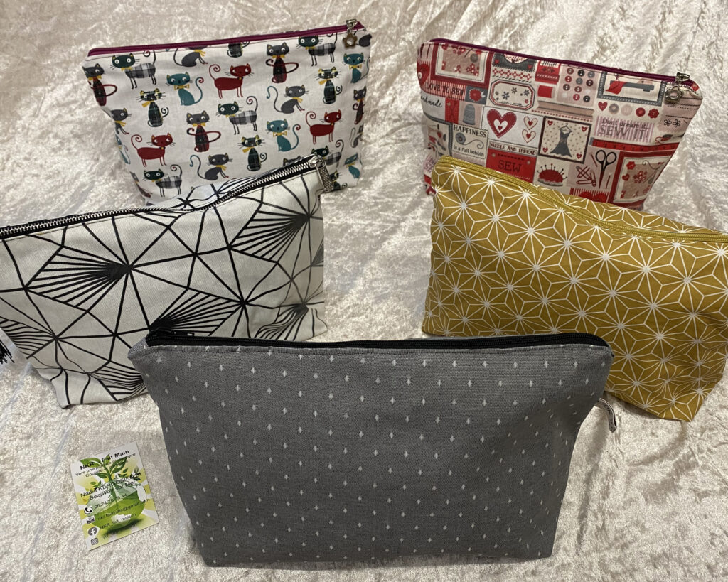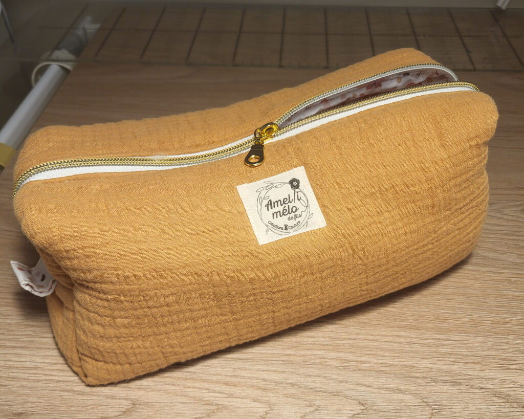 Une trousse de toilette en double gaze de coton.