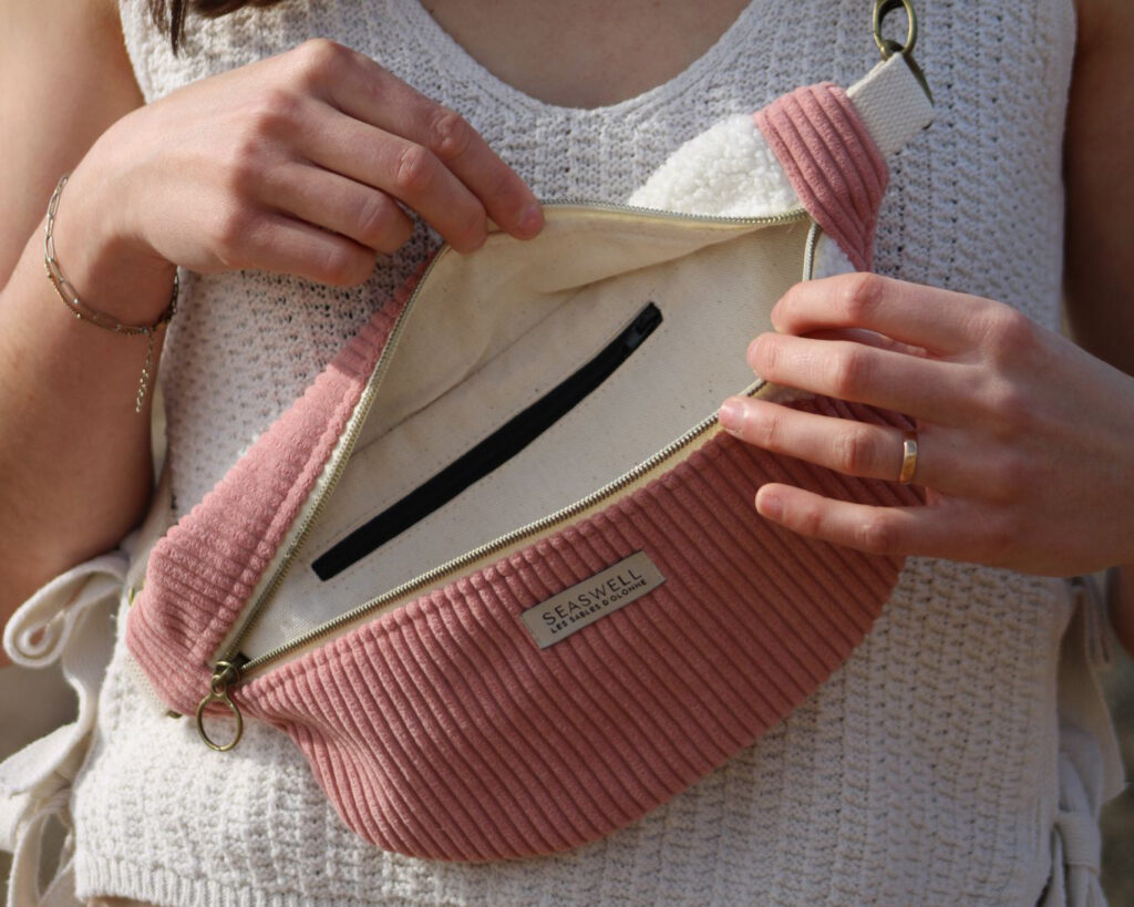 Un sac banane en velours côtelé.