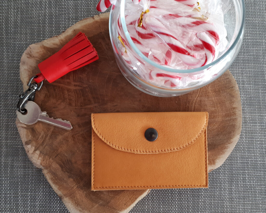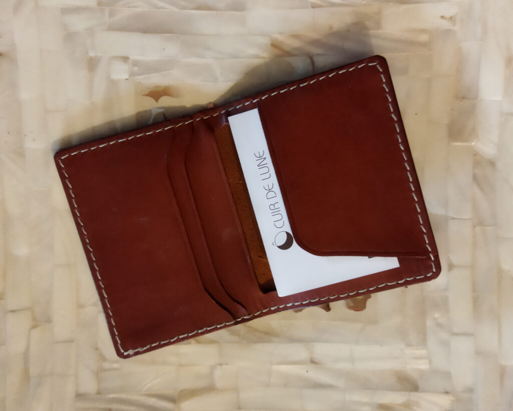 Un porte carte en cuir, tannage végétal.
