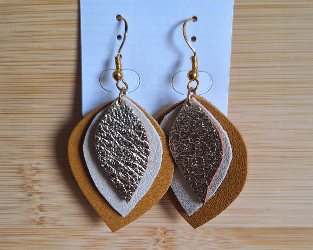 Une paire de boucles d’oreilles en cuir.