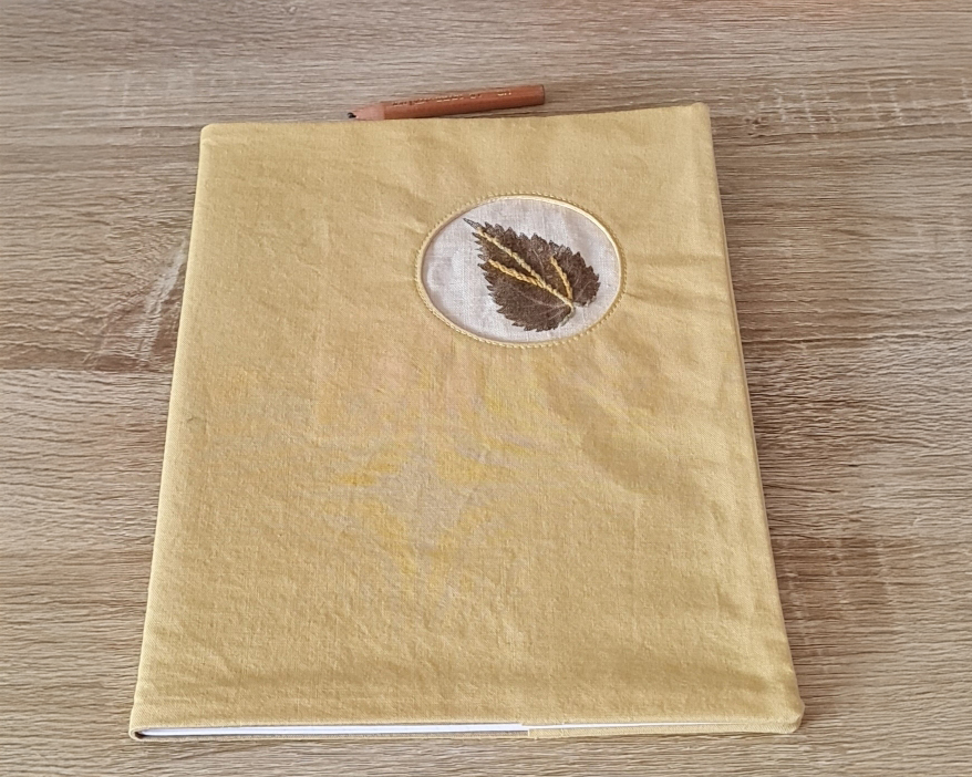 Un protège cahier A5 en coton et teinture végétale.