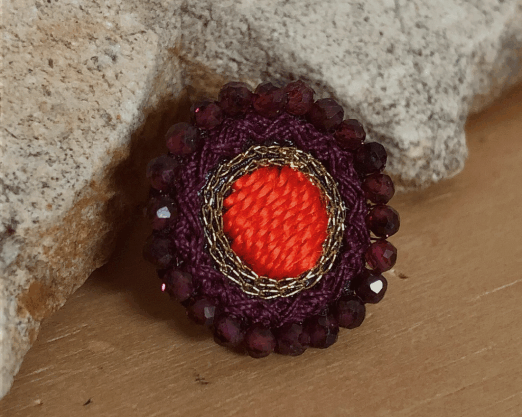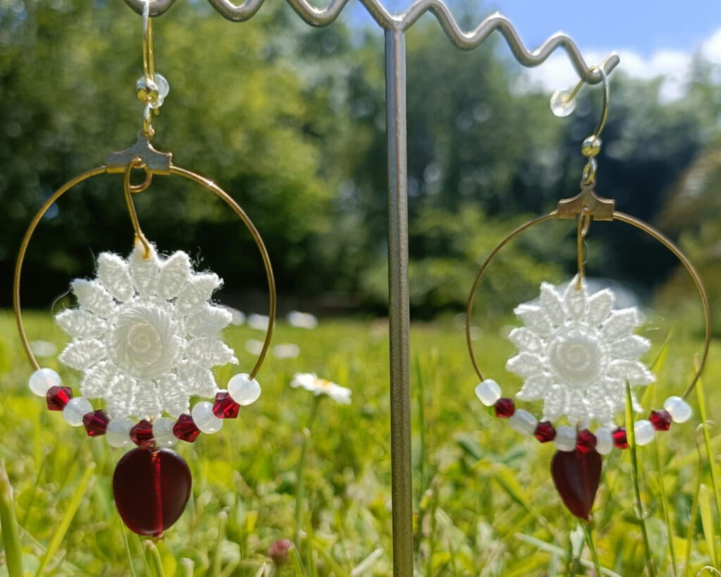 Une paire de boucles d’oreilles brodées à la main au crochet