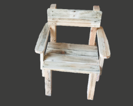 Un fauteuil pour enfant en bois recyclé, avec personnalisation du prénom.