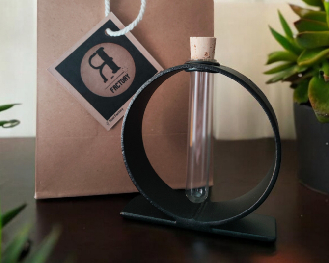 Un soliflore artisanal en acier upcyclé.