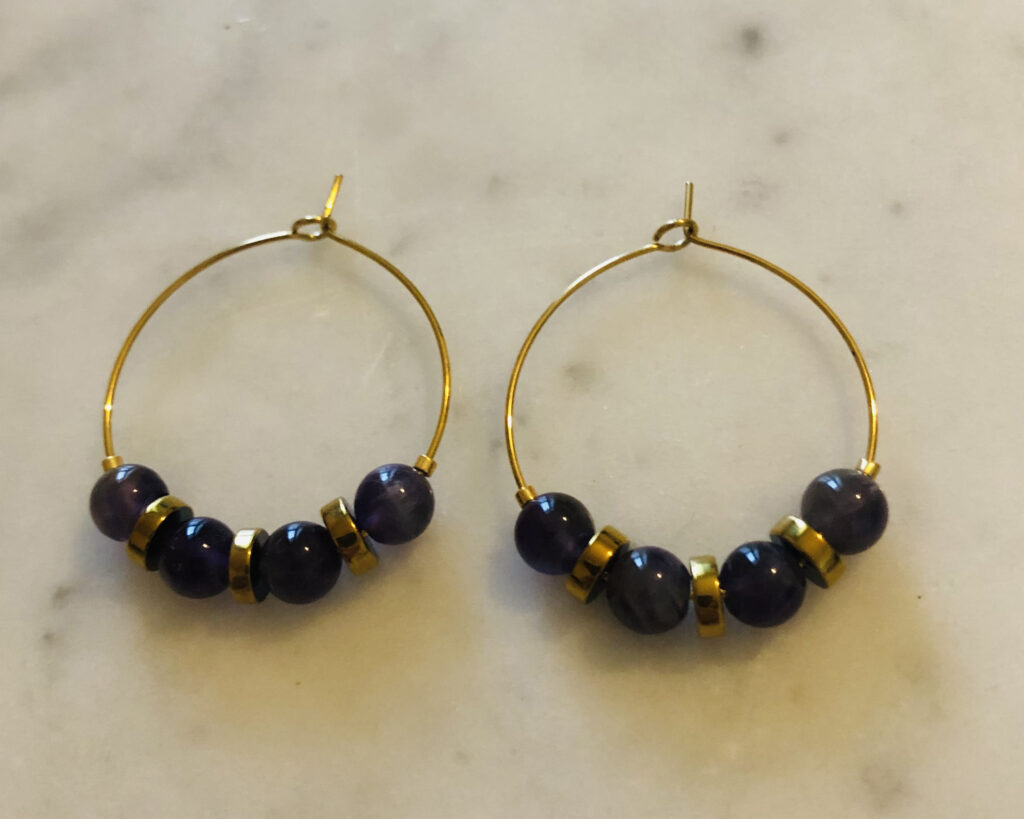 Une paire de créoles avec pierres naturelles.