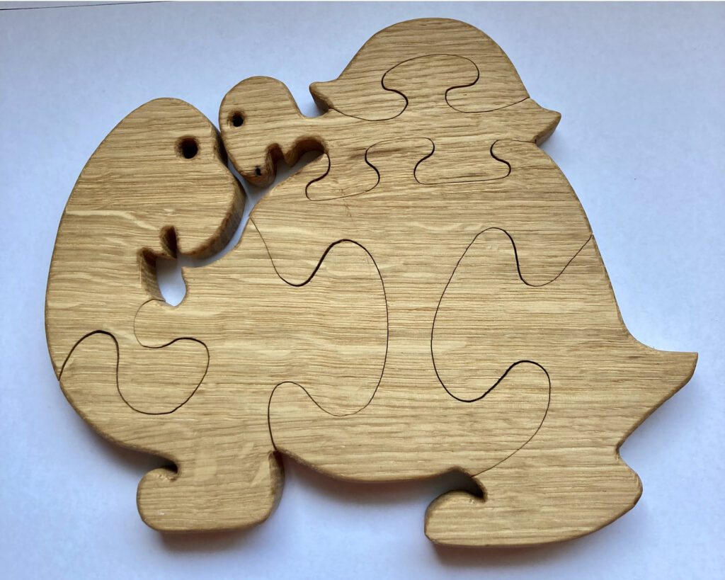 Un puzzle « famille tortue » en bois.