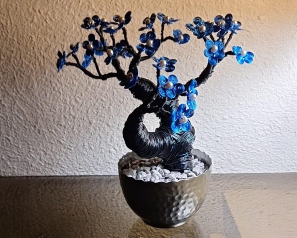Un bonsaï décoratif en fil d’aluminium