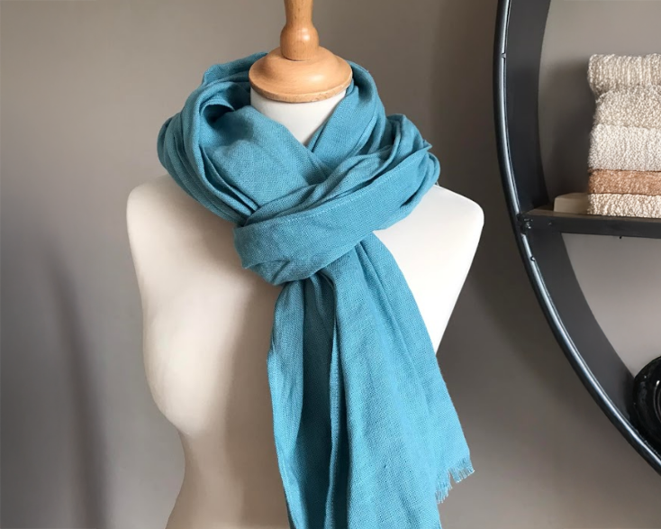 Un chèche en lin bleu ciel.