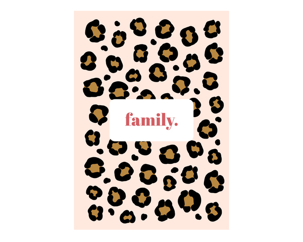 Une affiche A4 imprimé « léopard » inscription « family ».