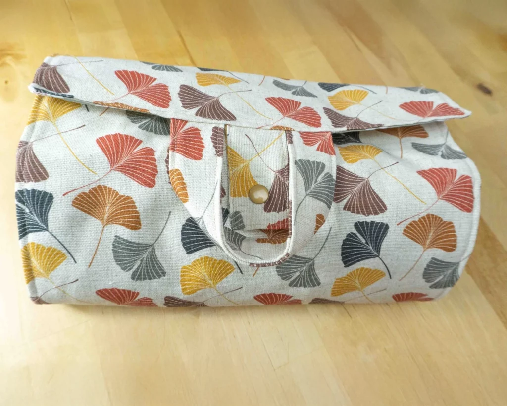 Une trousse de toilette en tissus enduit.