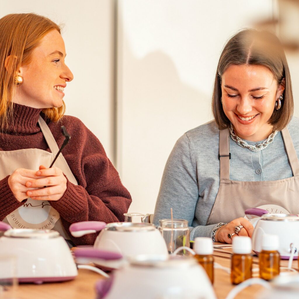Nous proposons également des ateliers de création de bougies, accessibles aux particuliers comme aux groupes. Ces moments permettent de découvrir notre savoir-faire et de repartir avec une création personnalisée dans une ambiance conviviale.